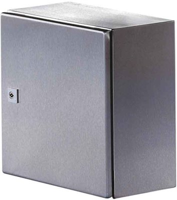 Coffret électrique AE en acier inoxydable 1. AISI 316L), y compris plaque de montage. Avec ou sans porte vitrée au choix. Réglage en profondeur en continu de la plaque de montage grâce à plusieurs plans de montage dans le coffret. Aménagement intérieur des portes flexible au moyen de bossages de fixation dans la porte.